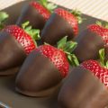 Morangos frescos e suculentos mergulhados em chocolate belga nobre, com...